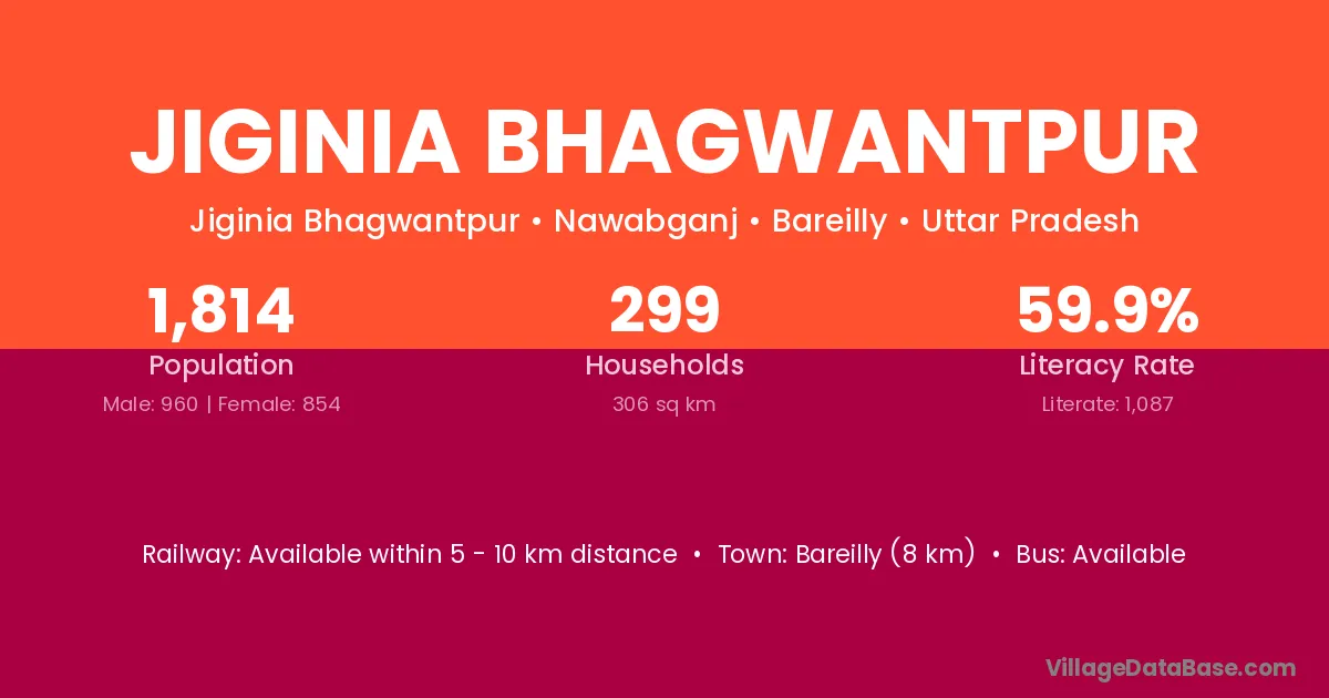 Bareilly (8 km) is the nearest town to Jiginia Bhagwantpur village for major economic activities and is located approximately 8 km away.