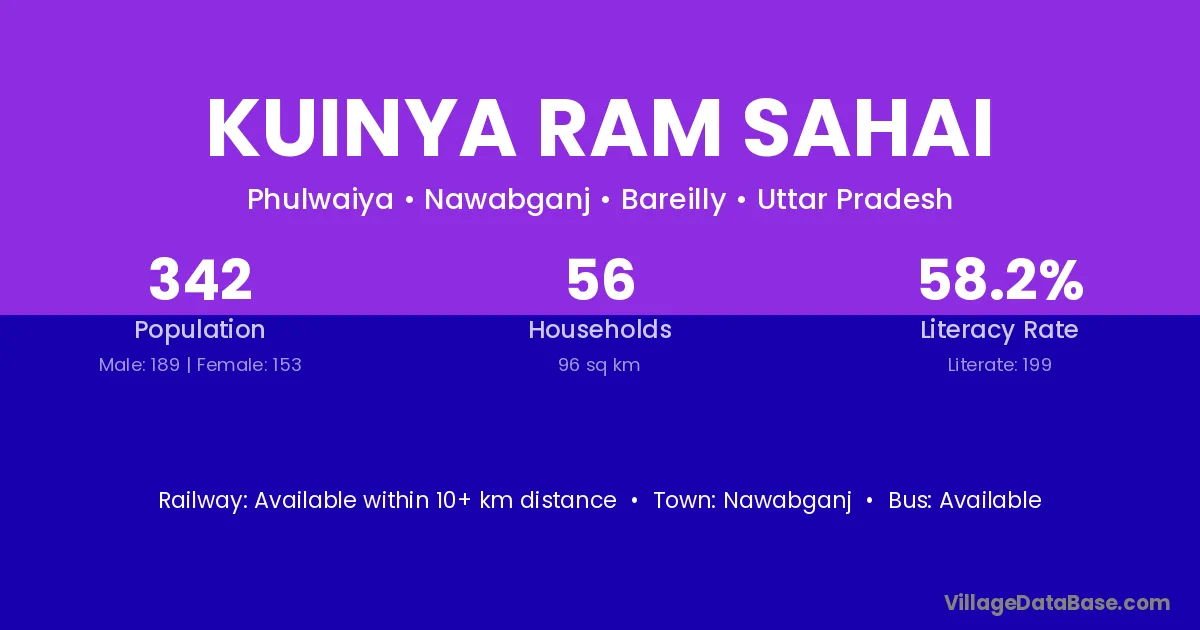 Kuinya Ram Sahai village has a total population of 342 people, of which 189 are males and 153 are females.