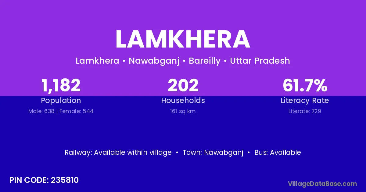 According to Census 2011 information, the village code of Lamkhera village is 235810.