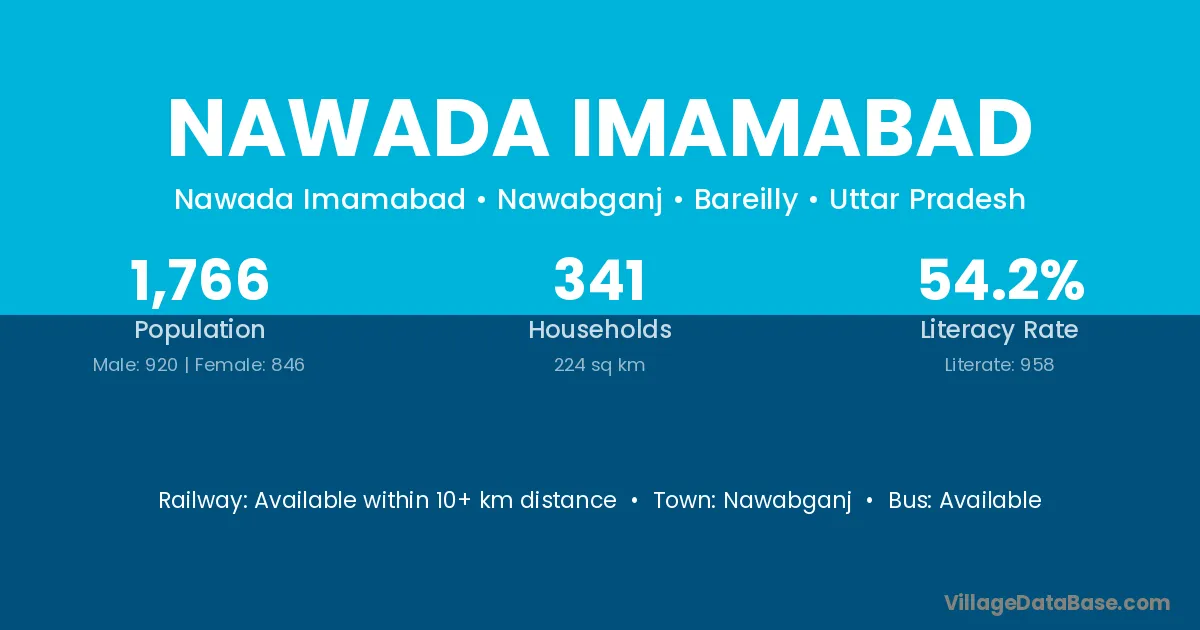 Nawada Imamabad village has a total population of 1,766 people, of which 920 are males and 846 are females.