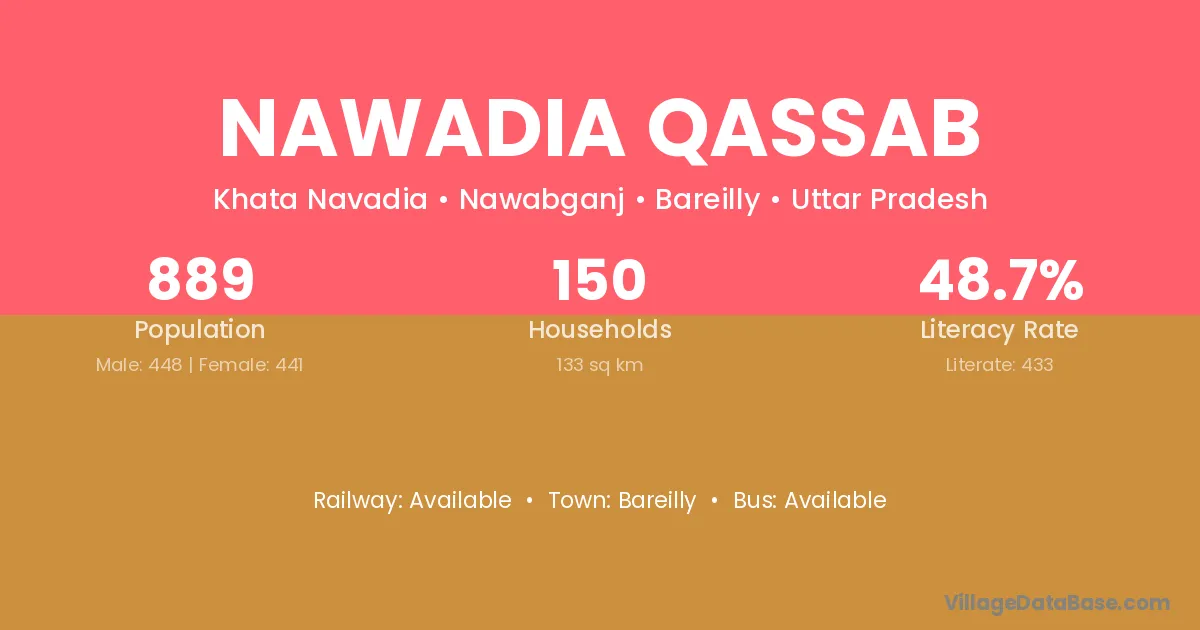Bareilly is the nearest town to Nawadia Qassab village for major economic activities