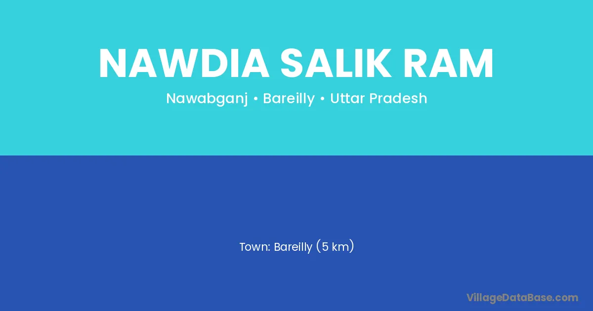 Bareilly (5 km) is the nearest town to Nawdia Salik Ram village for major economic activities and is located approximately 5 km away.