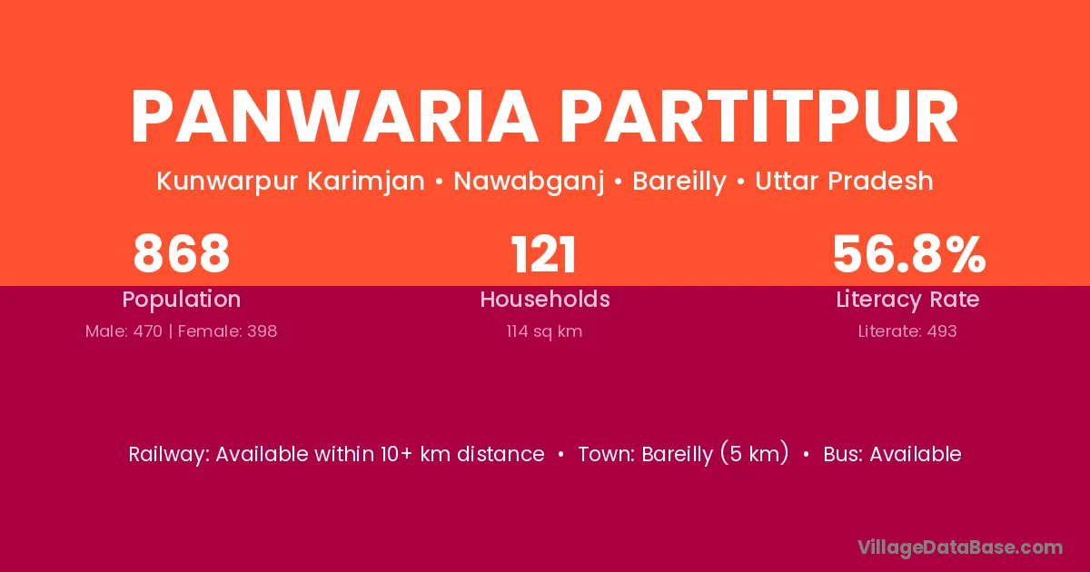 Bareilly (5 km) is the nearest town to Panwaria Partitpur village for major economic activities and is located approximately 5 km away.