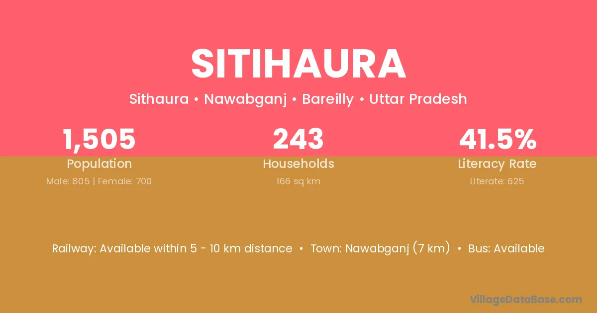 Sitihaura village has a total population of 1,505 people, of which 805 are males and 700 are females.