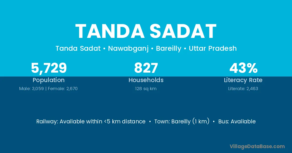 Bareilly (1 km) is the nearest town to Tanda Sadat village for major economic activities and is located approximately 1 km away.