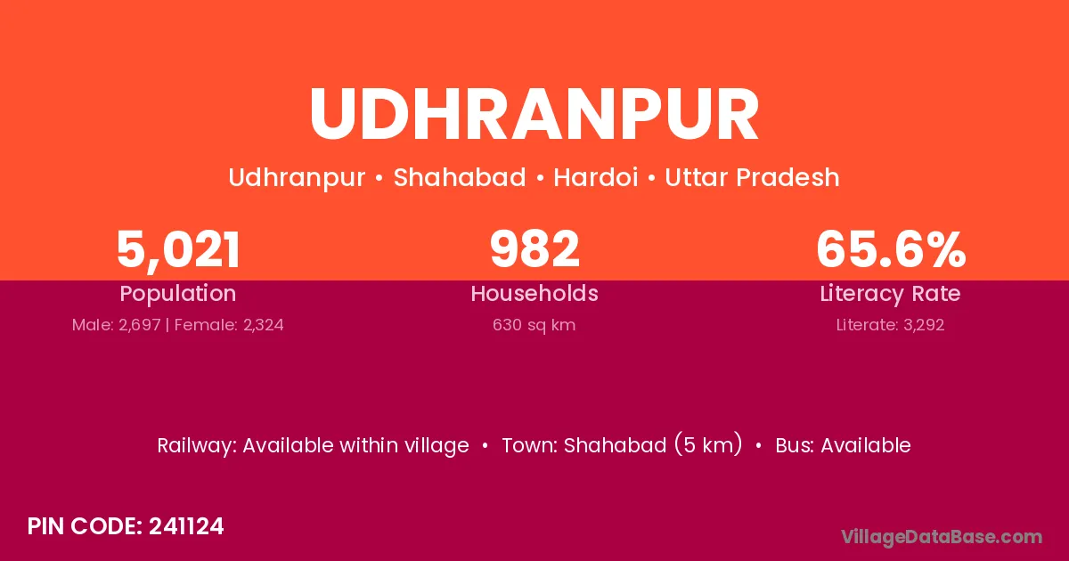 Udhranpur village has a total population of 1,328 people, of which 711 are males and 617 are females.