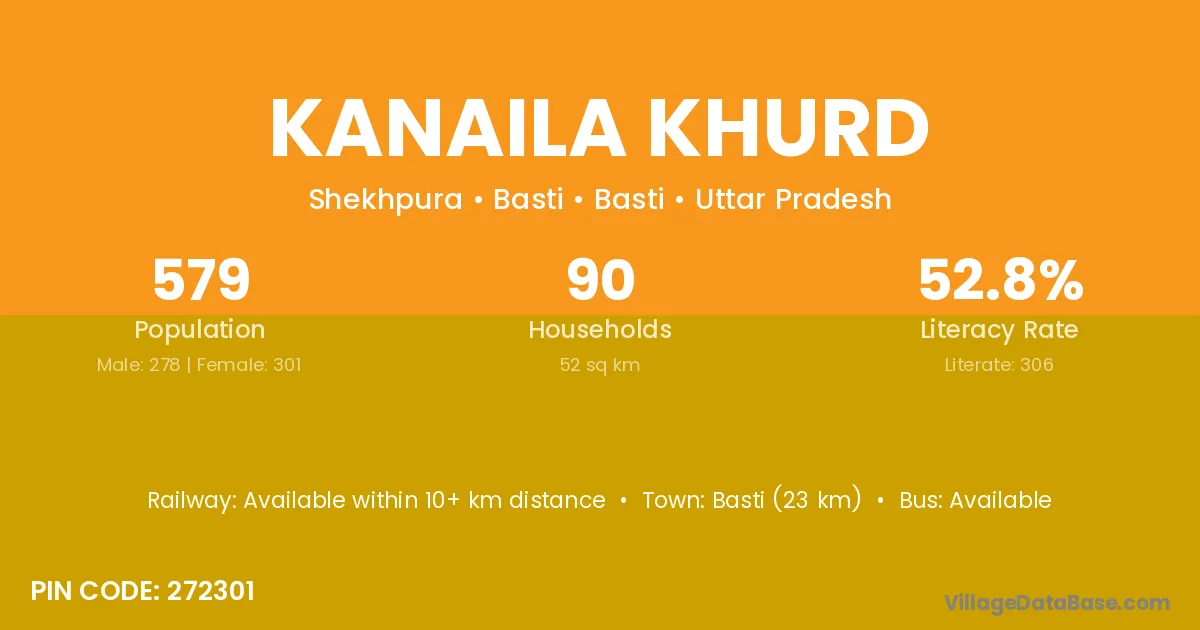 Basti (23 km) is the nearest town to Kanaila Khurd village for major economic activities and is located approximately 23 km away.