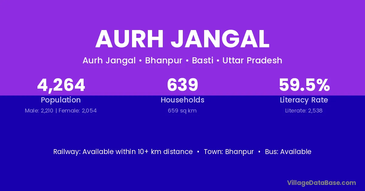 Aurh Jangal village has a total population of 4,264 people, of which 2,210 are males and 2,054 are females.
