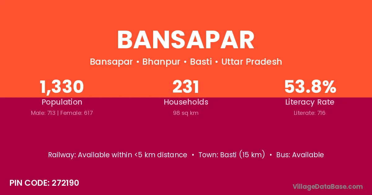 Basti (15 km) is the nearest town to Bansapar village for major economic activities and is located approximately 15 km away.