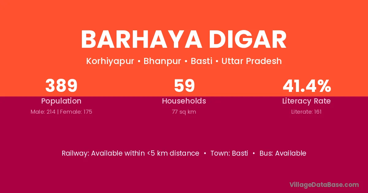Basti is the nearest town to Barhaya Digar village for major economic activities