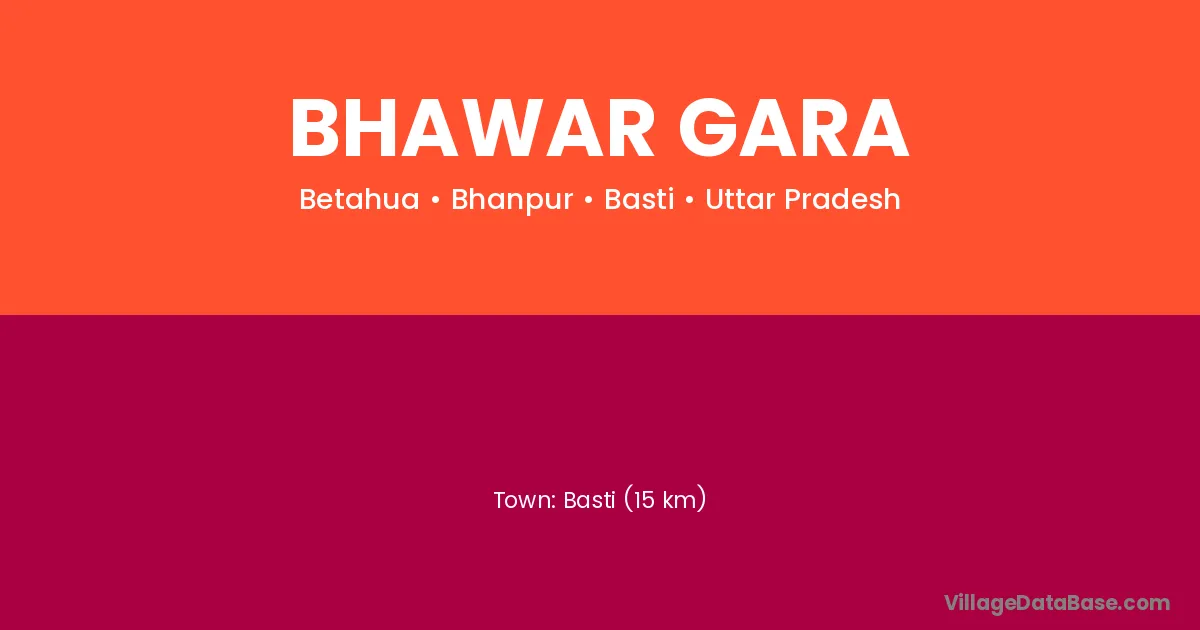 Basti (15 km) is the nearest town to Bhawar Gara village for major economic activities and is located approximately 15 km away.