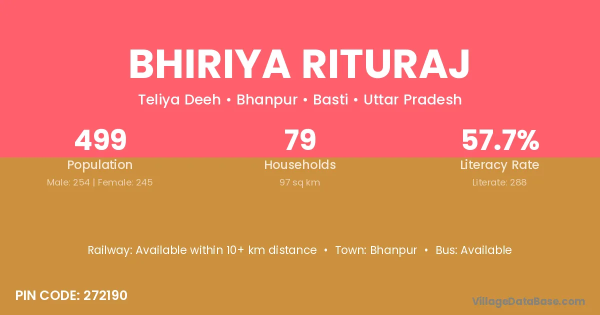 Bhiriya Rituraj village is located in the Bhanpur Tehsil of the Basti district in Uttar Pradesh .