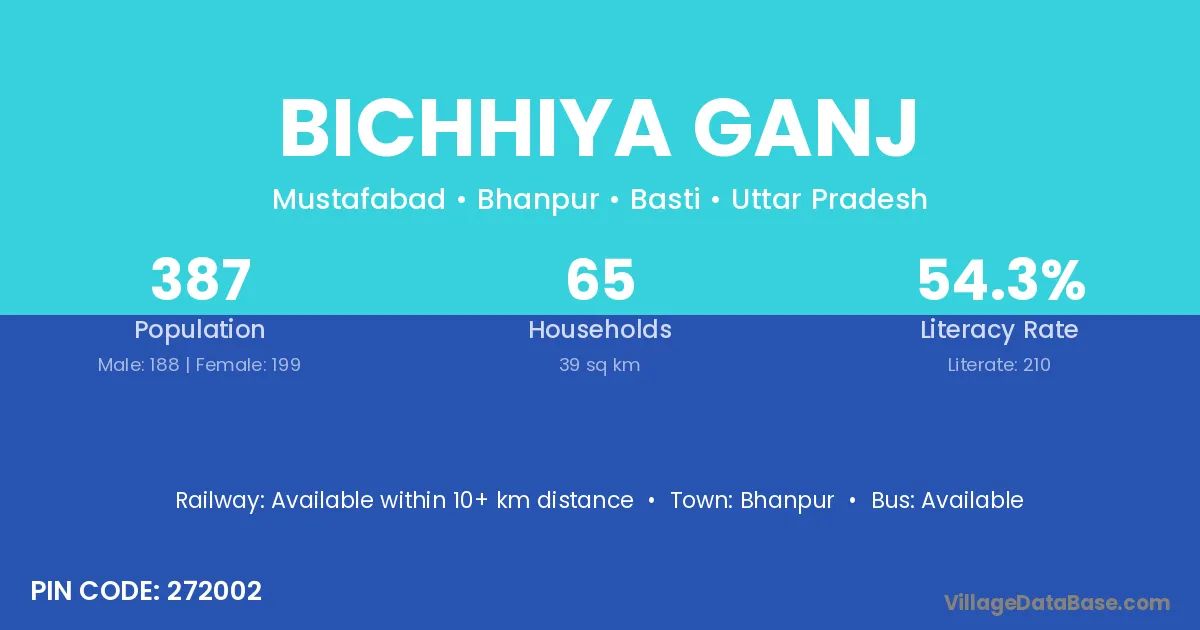 Bichhiya Ganj village has a total population of 387 people, of which 188 are males and 199 are females.