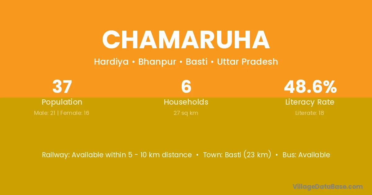 Basti (23 km) is the nearest town to Chamaruha village for major economic activities and is located approximately 23 km away.