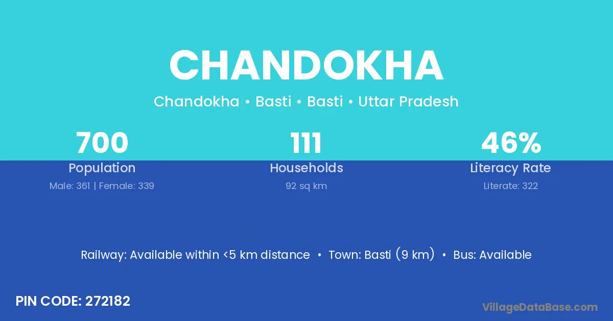 Basti (17 km) is the nearest town to Chandokha village for major economic activities and is located approximately 17 km away.