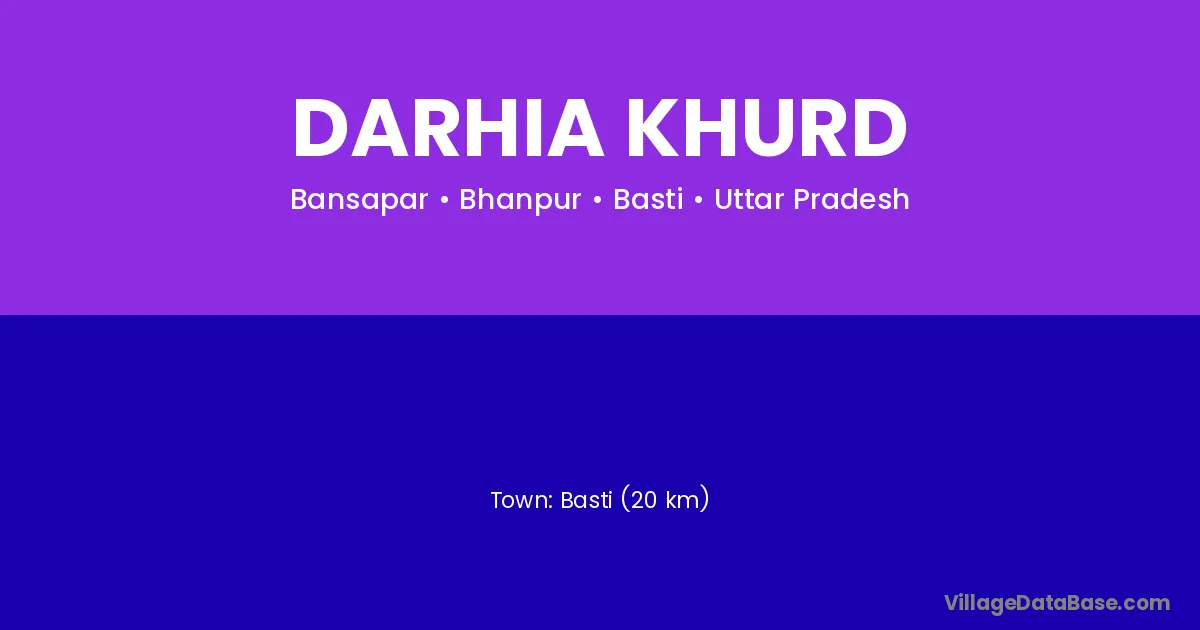 Basti (20 km) is the nearest town to Darhia Khurd village for major economic activities and is located approximately 20 km away.