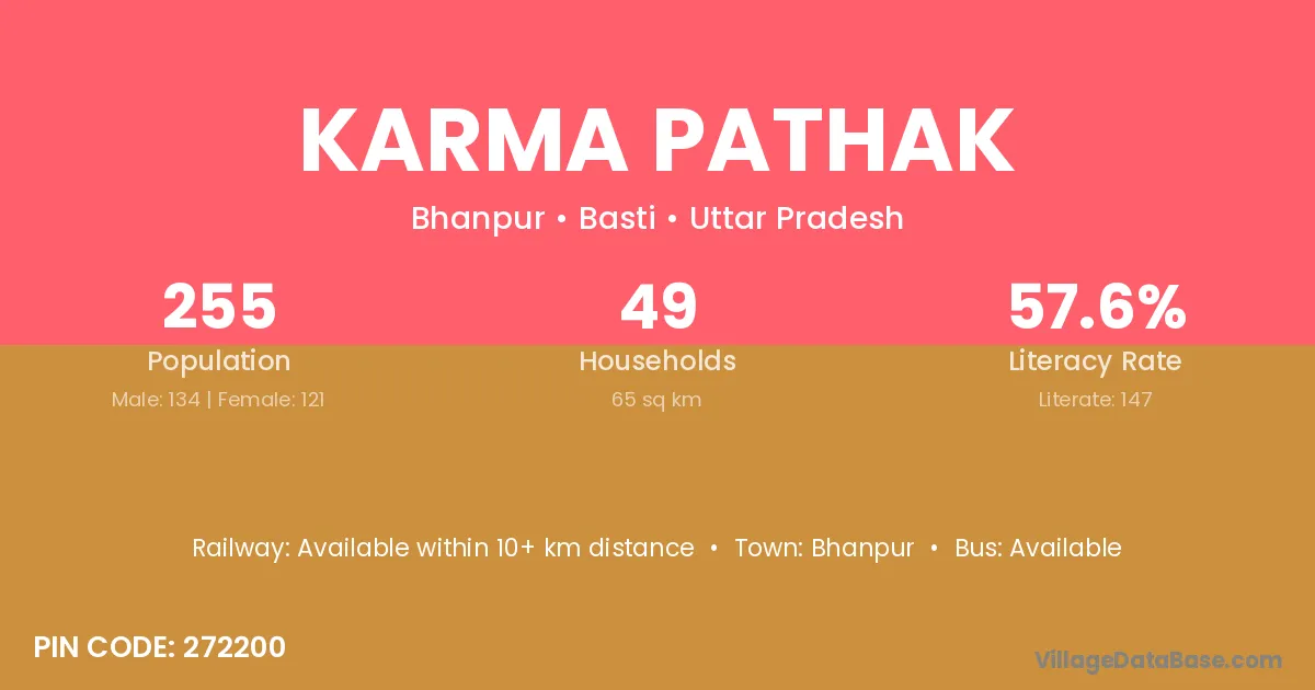 Karma Pathak village has a total population of 255 people, of which 134 are males and 121 are females.