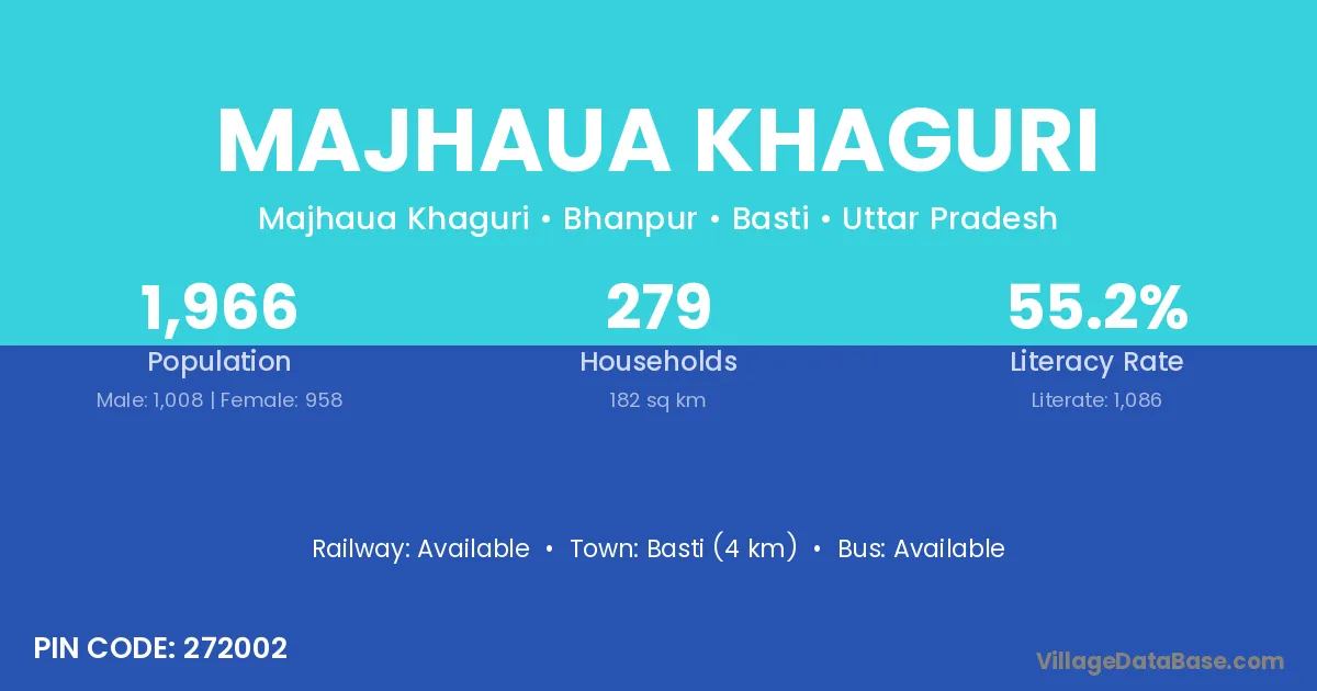 Basti (4 km) is the nearest town to Majhaua Khaguri village for major economic activities and is located approximately 4 km away.