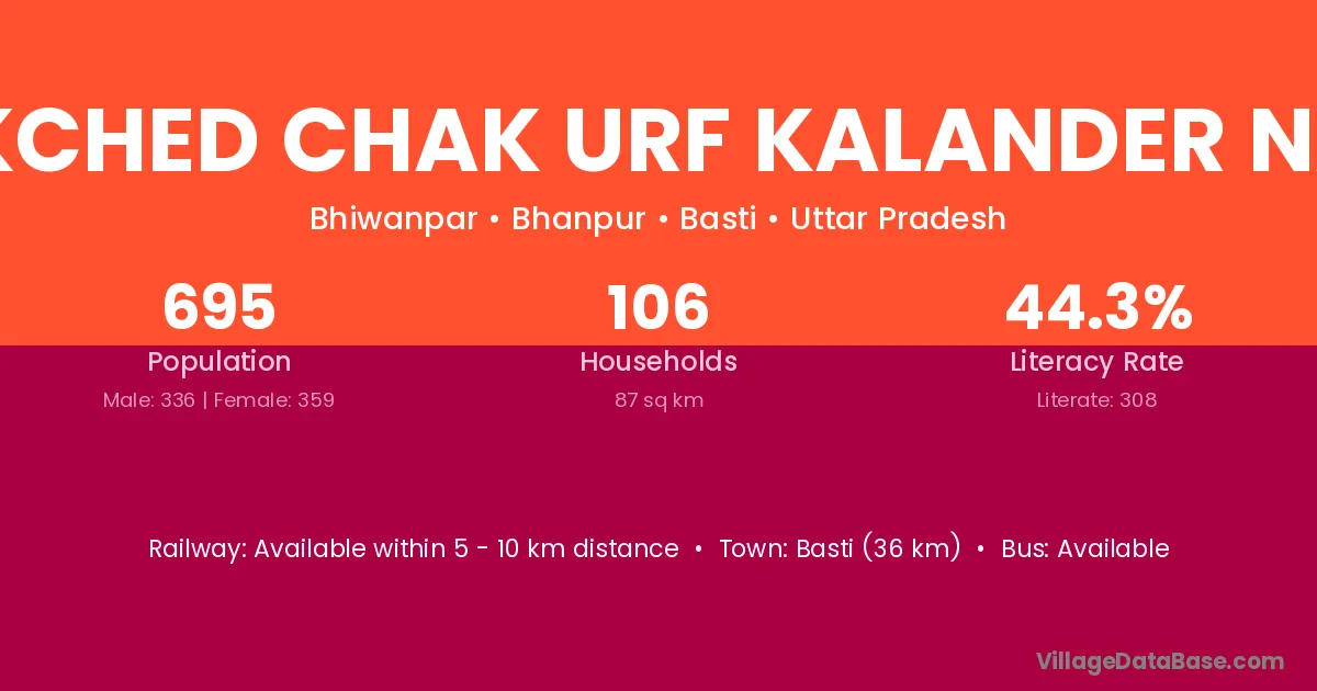 Nakched Chak Urf Kalander Nage village has a total population of 695 people, of which 336 are males and 359 are females.