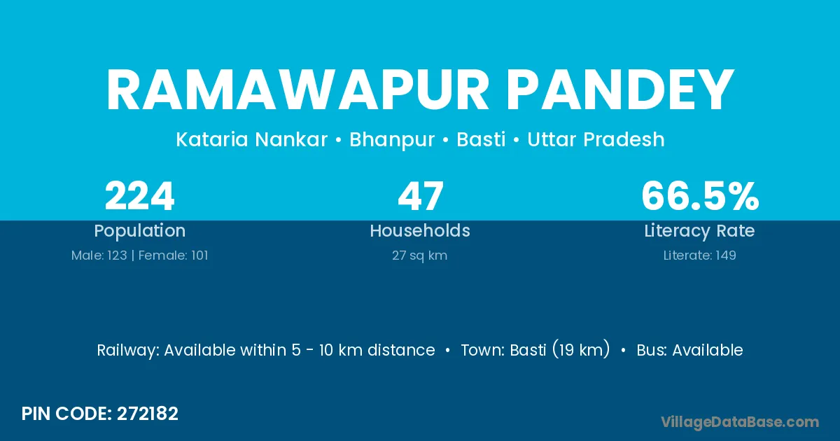 Basti (19 km) is the nearest town to Ramawapur Pandey village for major economic activities and is located approximately 19 km away.