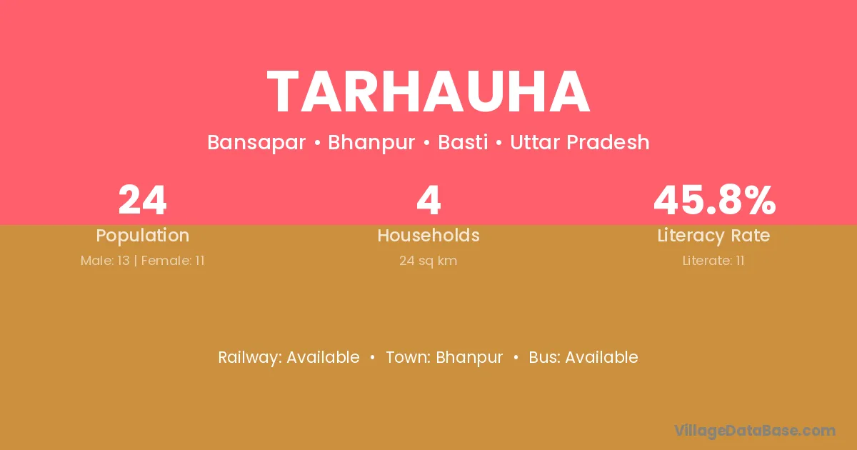 Tarhauha village has a total population of 24 people, of which 13 are males and 11 are females.