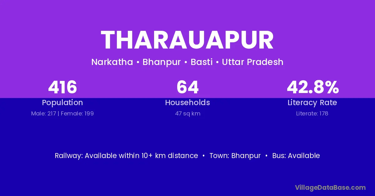 Tharauapur village has a total population of 416 people, of which 217 are males and 199 are females.