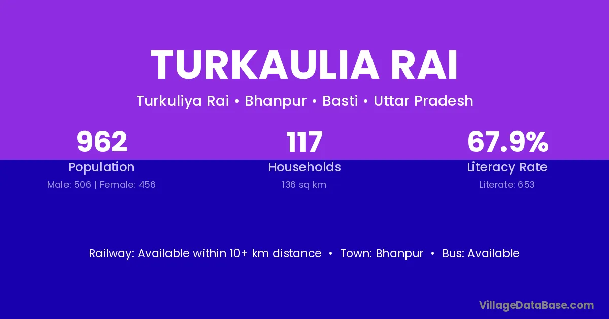 Turkaulia Rai village has a total population of 962 people, of which 506 are males and 456 are females.