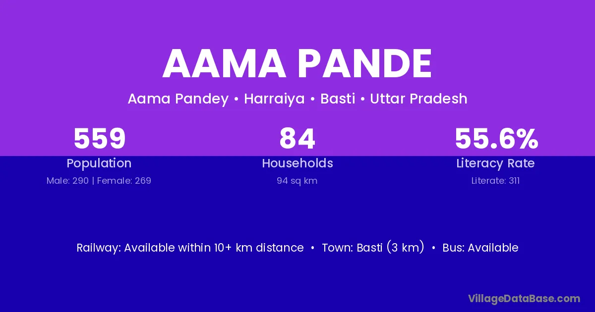 Basti (3 km) is the nearest town to Aama Pande village for major economic activities and is located approximately 3 km away.