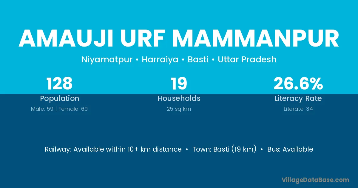 Basti (19 km) is the nearest town to Amauji Urf Mammanpur village for major economic activities and is located approximately 19 km away.