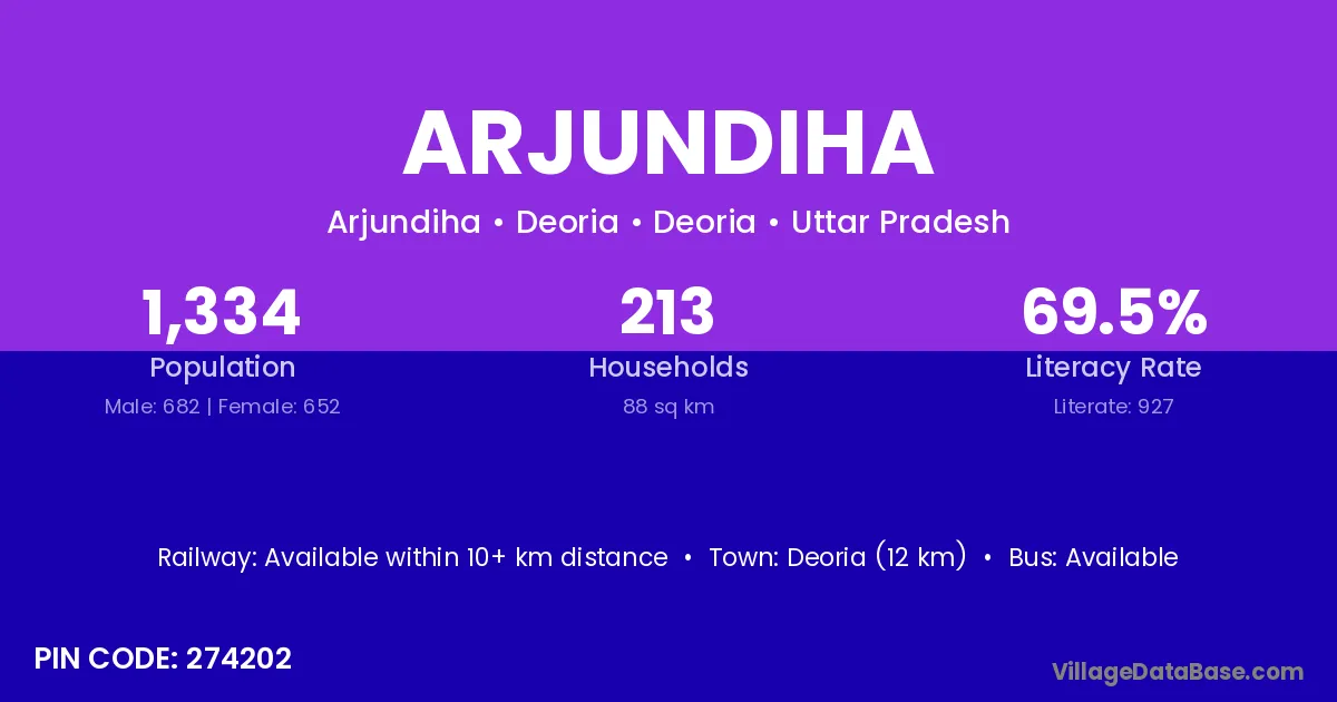 Basti (20 km) is the nearest town to Arjundiha village for major economic activities and is located approximately 20 km away.