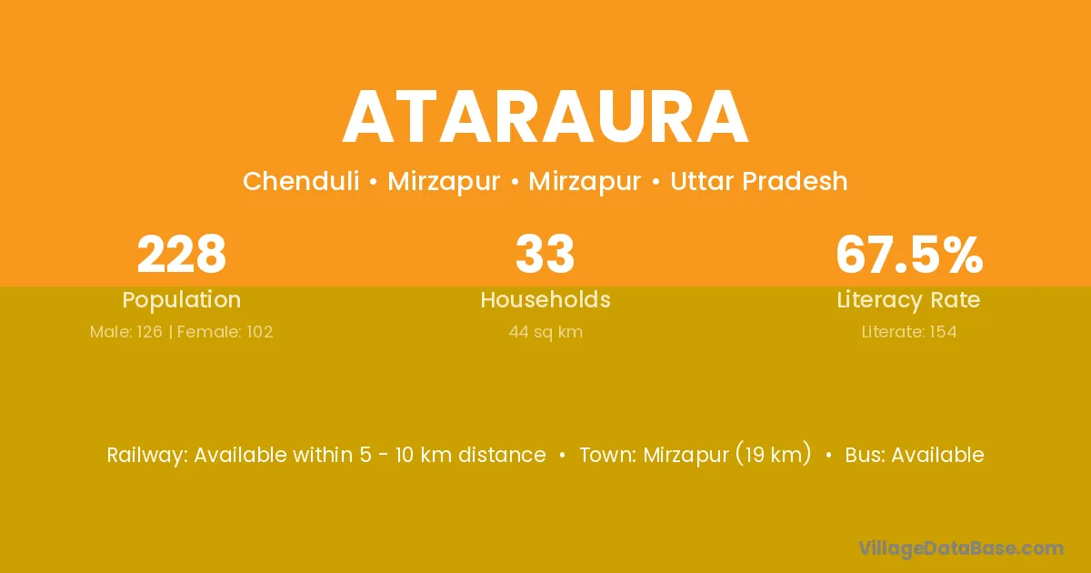 Basti (33 km) is the nearest town to Ataraura village for major economic activities and is located approximately 33 km away.