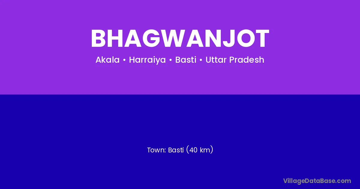 Basti (40 km) is the nearest town to Bhagwanjot village for major economic activities and is located approximately 40 km away.