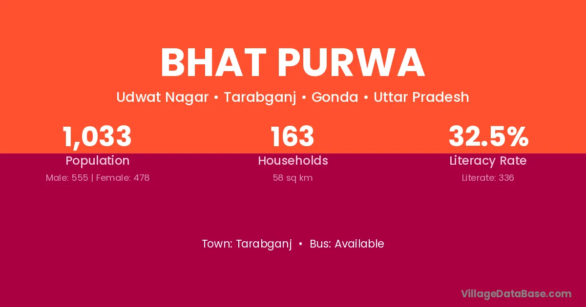 Basti (32 km) is the nearest town to Bhat Purwa village for major economic activities and is located approximately 32 km away.