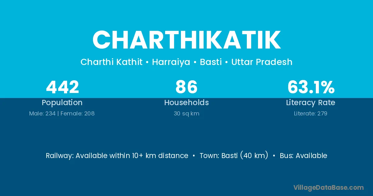 Basti (40 km) is the nearest town to Charthikatik village for major economic activities and is located approximately 40 km away.