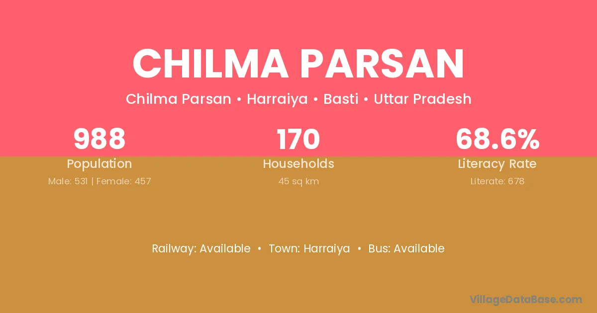 Chilma Parsan village has a total population of 988 people, of which 531 are males and 457 are females.