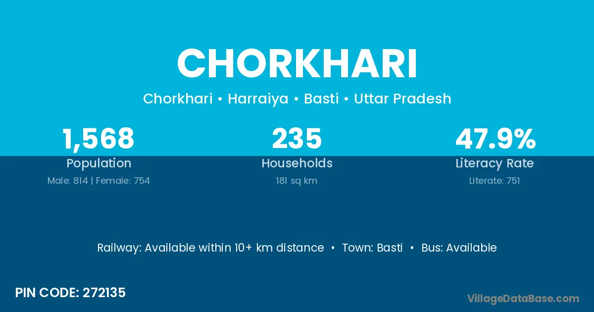 Basti is the nearest town to Chorkhari village for major economic activities