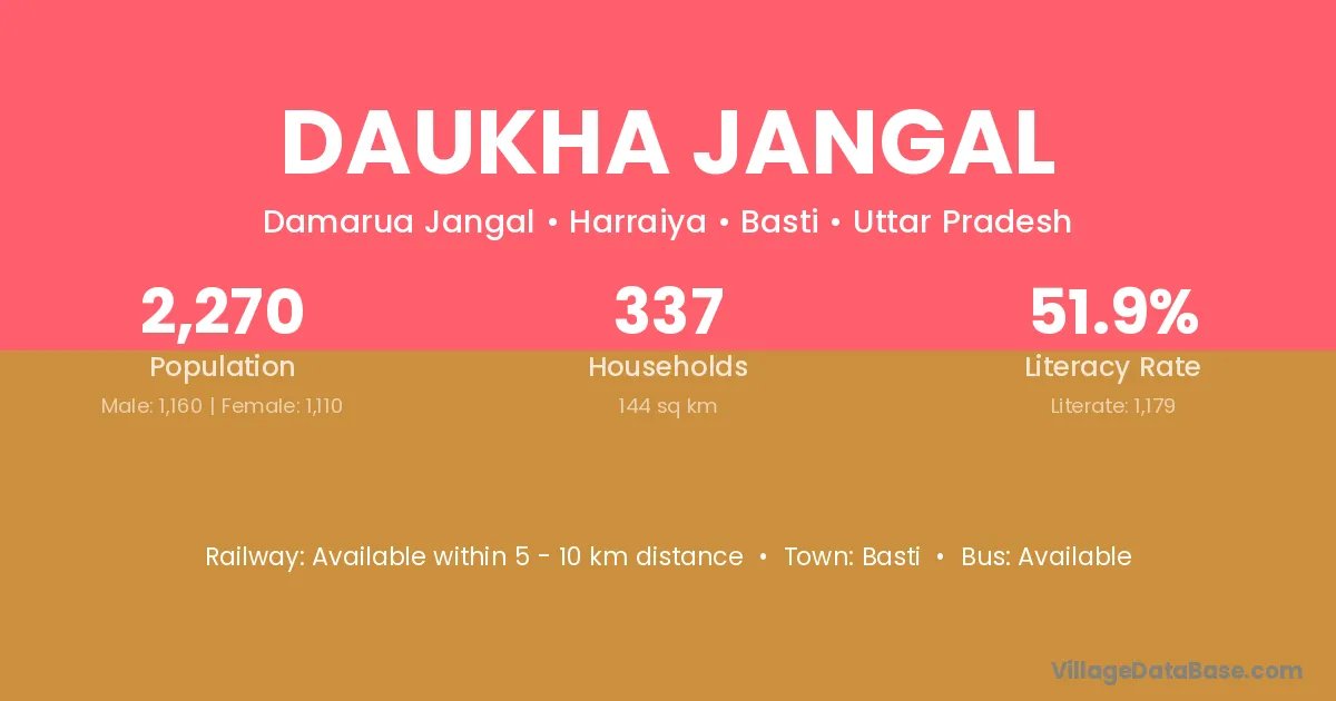 Daukha Jangal village has a total population of 2,270 people, of which 1,160 are males and 1,110 are females.