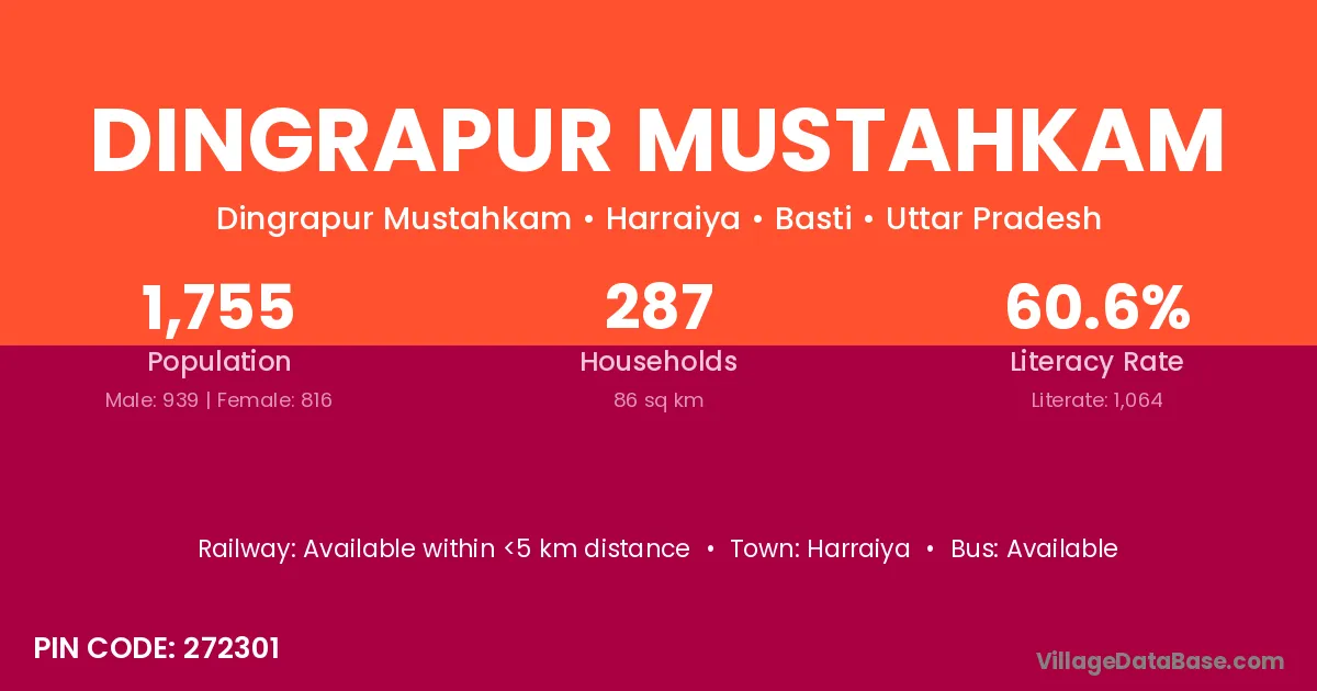 Harraiya is the nearest town to Dingrapur Mustahkam village for major economic activities