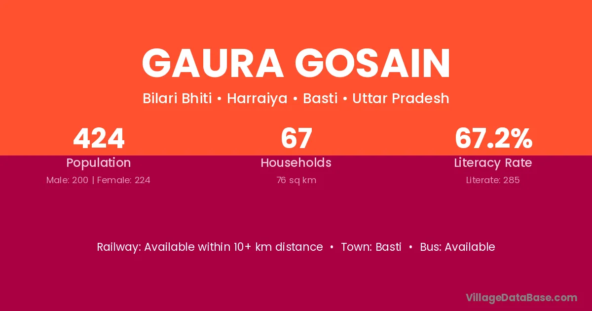 Gaura Gosain village has a total population of 424 people, of which 200 are males and 224 are females.