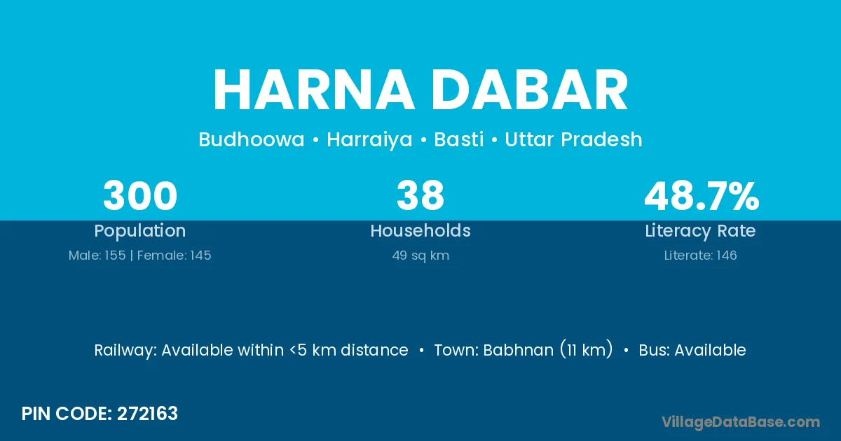 Babhnan (11 km) is the nearest town to Harna Dabar village for major economic activities and is located approximately 11 km away.