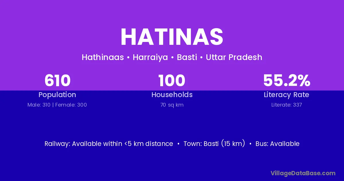 Basti (15 km) is the nearest town to Hatinas village for major economic activities and is located approximately 15 km away.
