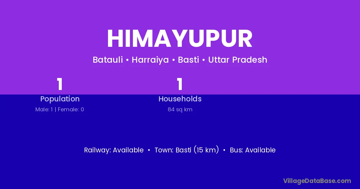 Basti (15 km) is the nearest town to Himayupur village for major economic activities and is located approximately 15 km away.