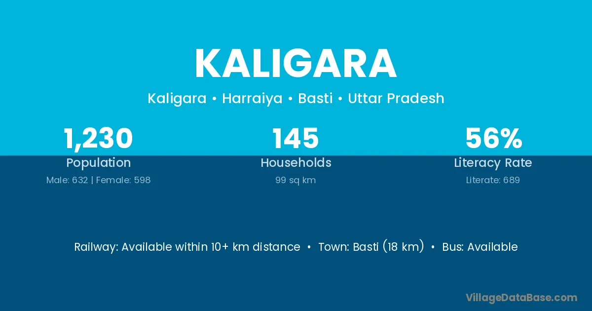 Basti (18 km) is the nearest town to Kaligara village for major economic activities and is located approximately 18 km away.