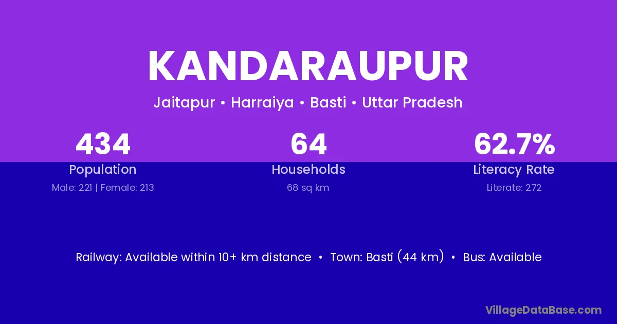 Basti (44 km) is the nearest town to Kandaraupur village for major economic activities and is located approximately 44 km away.
