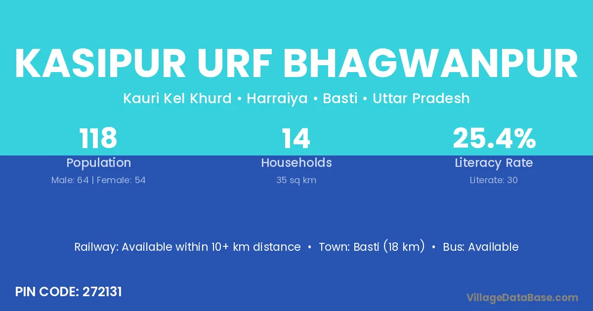 Kasipur Urf Bhagwanpur village has a total population of 118 people, of which 64 are males and 54 are females.