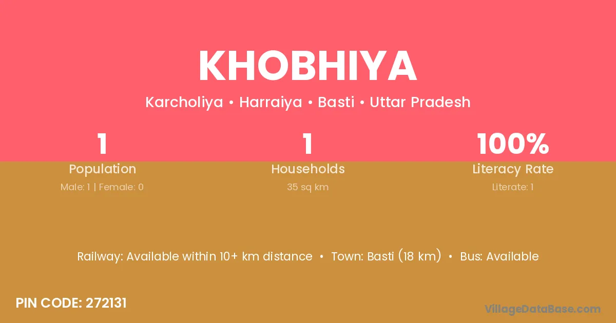 Basti (18 km) is the nearest town to Khobhiya village for major economic activities and is located approximately 18 km away.