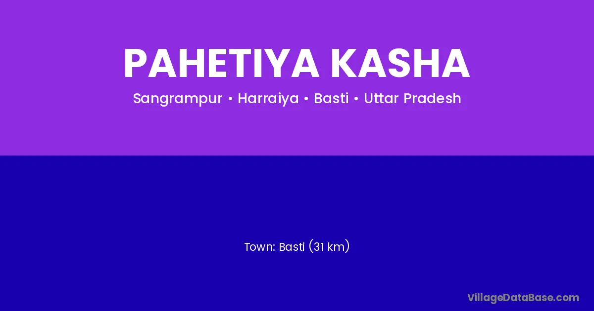 Basti (31 km) is the nearest town to Pahetiya Kasha village for major economic activities and is located approximately 31 km away.