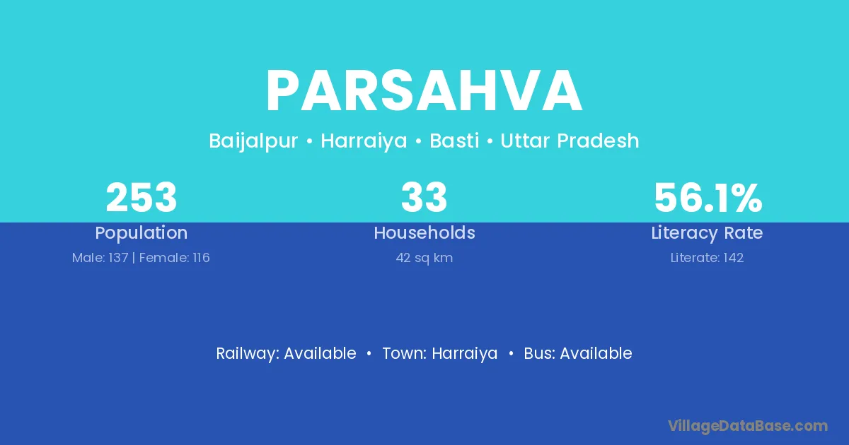 Parsahva village has a total population of 253 people, of which 137 are males and 116 are females.