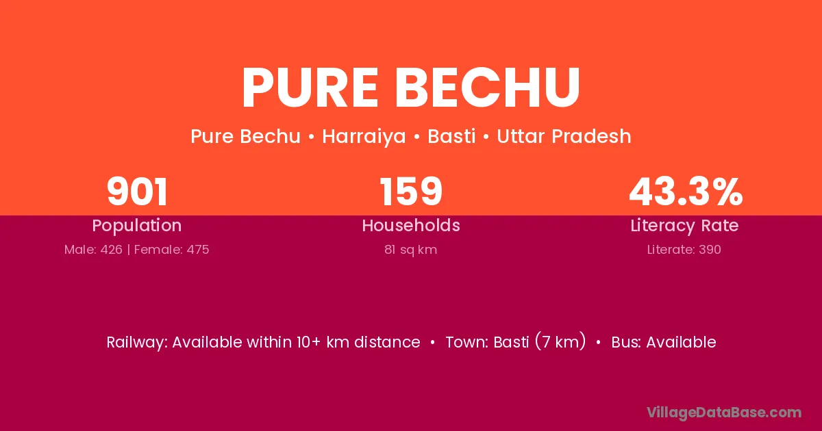 Basti (7 km) is the nearest town to Pure Bechu village for major economic activities and is located approximately 7 km away.