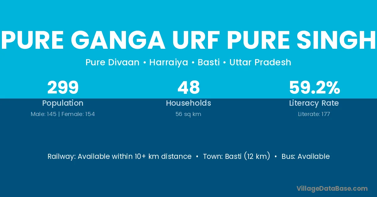 Basti (12 km) is the nearest town to Pure Ganga Urf Pure Singh village for major economic activities and is located approximately 12 km away.